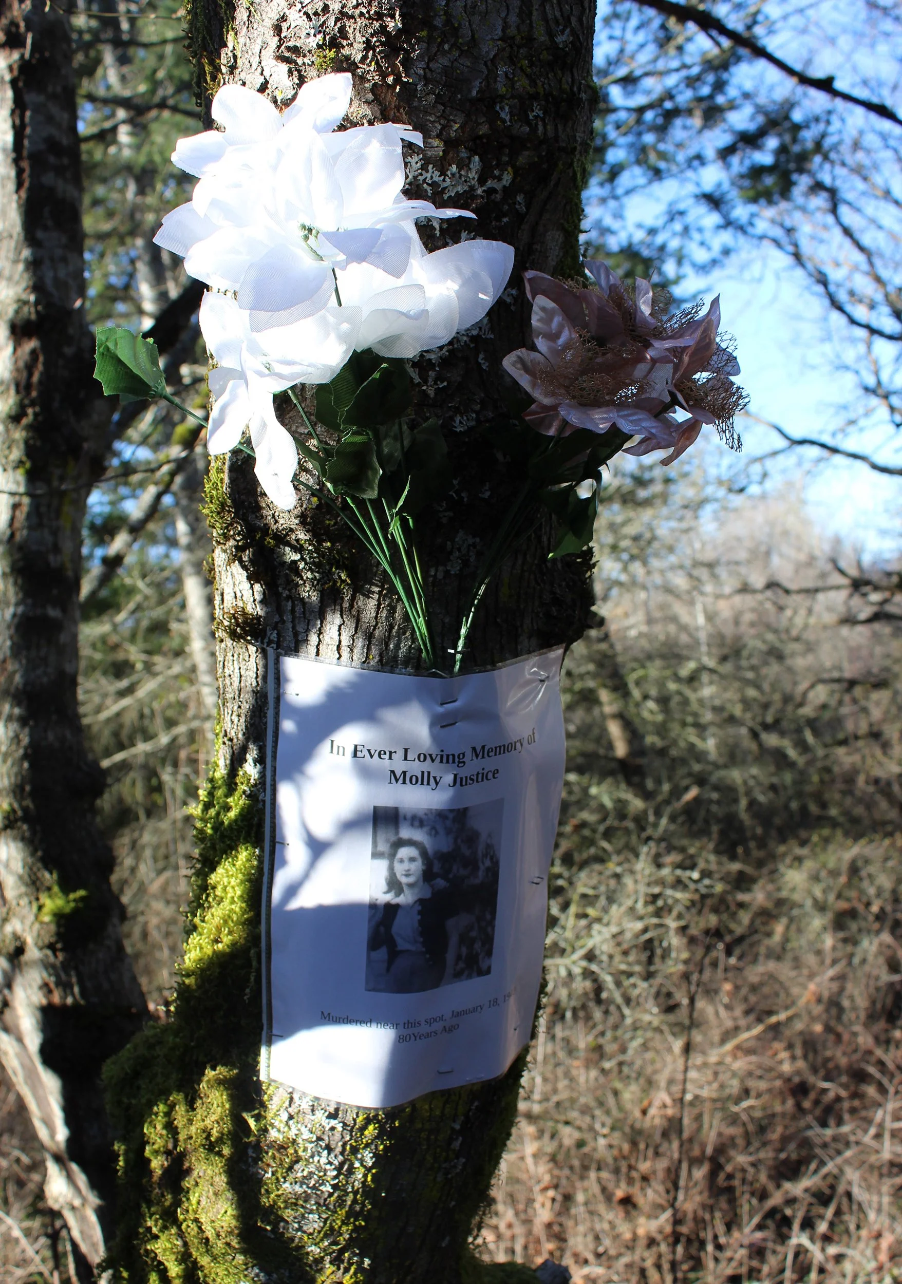 Belinda Wright’s photo of the poster and flowers we placed for Molly in January. They were still there when she visited last month.