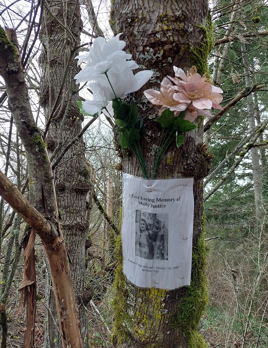 I begin with the sad news that the poster we placed in memory of Molly Justice who was murdered in January 1943 has been removed by persons, and for reasons, unknown.