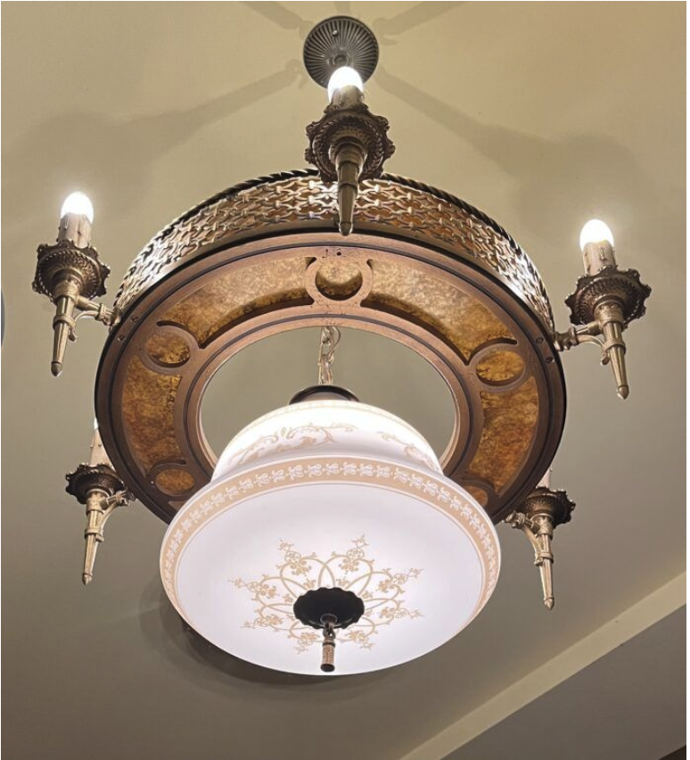 Its twin also disappeared about the same time but was returned during a 1980’s restoration. Until recently, this chandelier hung in the living room of a private Prince George area home and was once owned by an antiques dealer whose son, Mike Mana, identified it as a match to the one hanging in the theatre. He has graciously returned it.