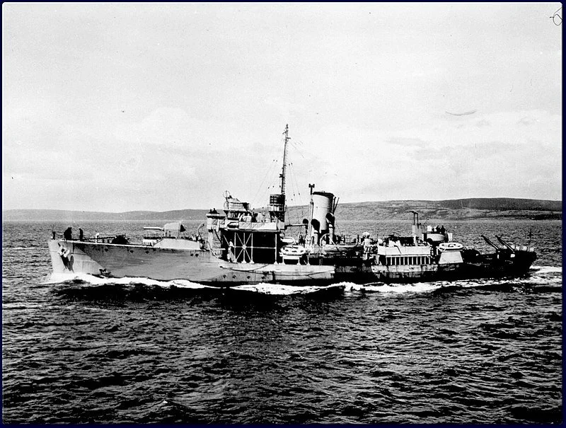 The Flower Class corvette HMCS Alberni was only a year old when she was torpedoed and sunk by the German submarine U-480 in August 1944. 59 of her crew perished.—National Defence photo/Wikipedia