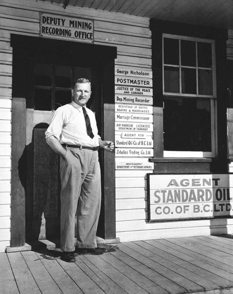 Let's see, he was postmaster, justice of the peace, deputy mining recorder, registrar of births, deaths and marriages, marriage commissioner, air and harbour licensee (for the Department of Transport), representative for the Department of Veterans Affairs and agent for the Standard Oil Company of B.C. Ltd., and Zeballos Trading Company Ltd.