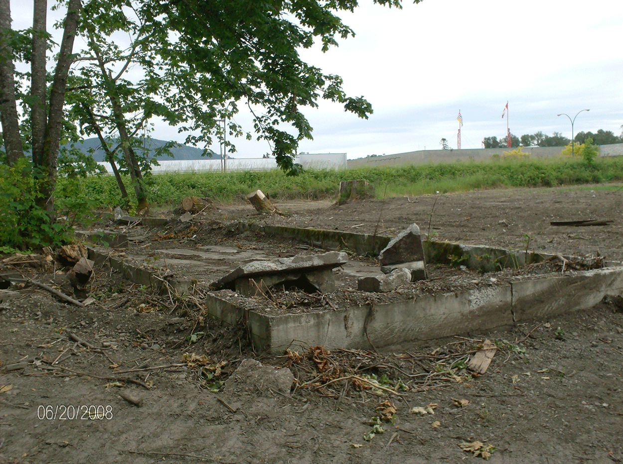 Like a ghost from the past, for a short time several years ago, this concrete foundation reappeared during landscaping work at the intersection of Duncan’s Trunk Road and the E&N Railway tracks.