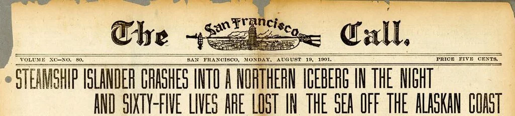 As it happened, Andrew Keating and both of his sons were drowned in the sinking of the S.S. Islander in Alaska’s Lynn Canal, in August 1901. Less than a week later, Tiarks was also dead as a result of injuries sustained in a bicycle accident in Victoria. He was just 34.