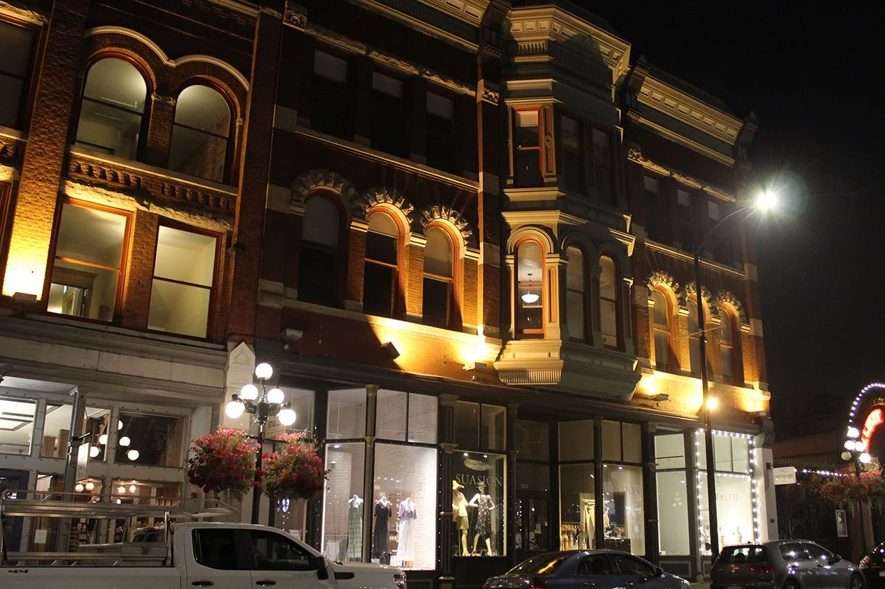 The Curtiss soared over the old Market Square and fire hall, rapidly losing altitude, crossed Government Street and “dropped almost vertically to the top of the Lee Dye building” at the corner of Cormorant Street and Theatre Alley. Bryant had been in the air for less than five minutes.