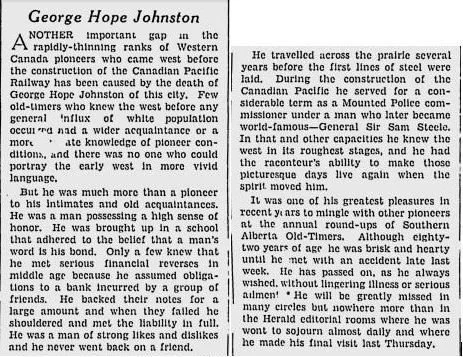 The Calgary Herald’s farewell tribute to pioneer George H. Johnston.