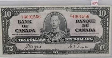 King George VI Canadian 10-dollar bill of the 1930s. --numismaclub.com