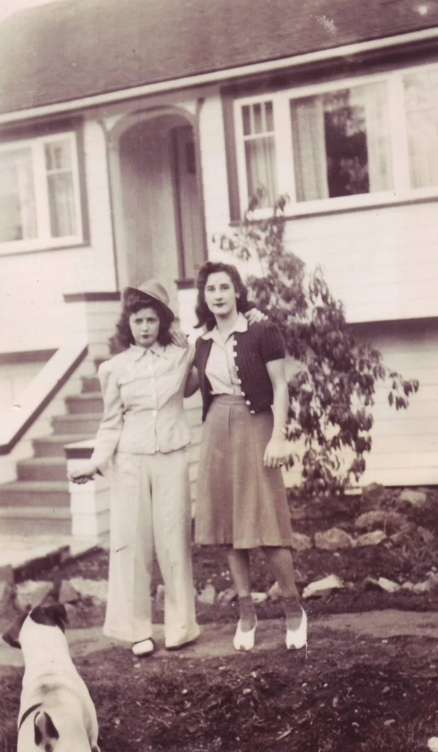 My Aunt Ada, left, and her best friend and neighbour, Molly Justice, in front of the Duke residence, 870 Brett Ave., Saanich. She looks very much a young woman in this photo, but Molly was only 15 when she was murdered on the CN Railway tracks, within two blocks of her home in 1943. —Family photo