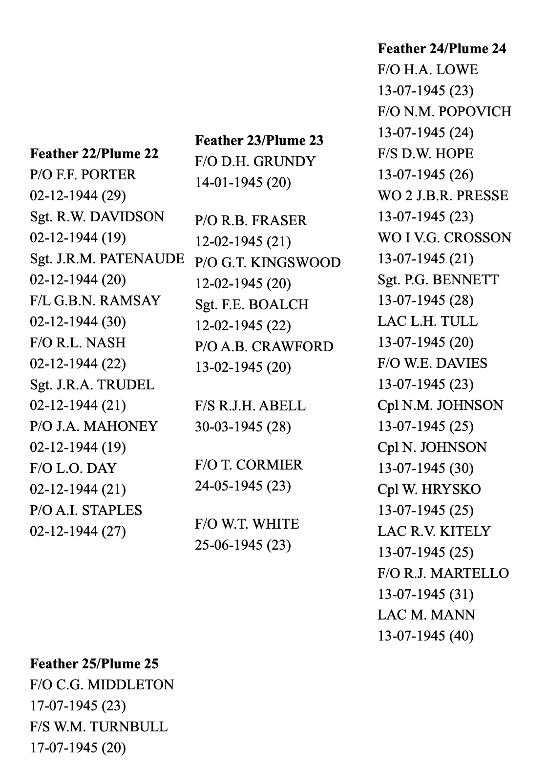 As we’ve seen, no fewer than 179 young trainees from Canada, Great Britain, Australia and New Zealand were killed, 1940-1945, without ever getting overseas. Fifty-eight of them have graves in Saanich’s Royal Oak Burial Park, Section D. Others are interred in collective graves at the crash sites. Some have never been found.