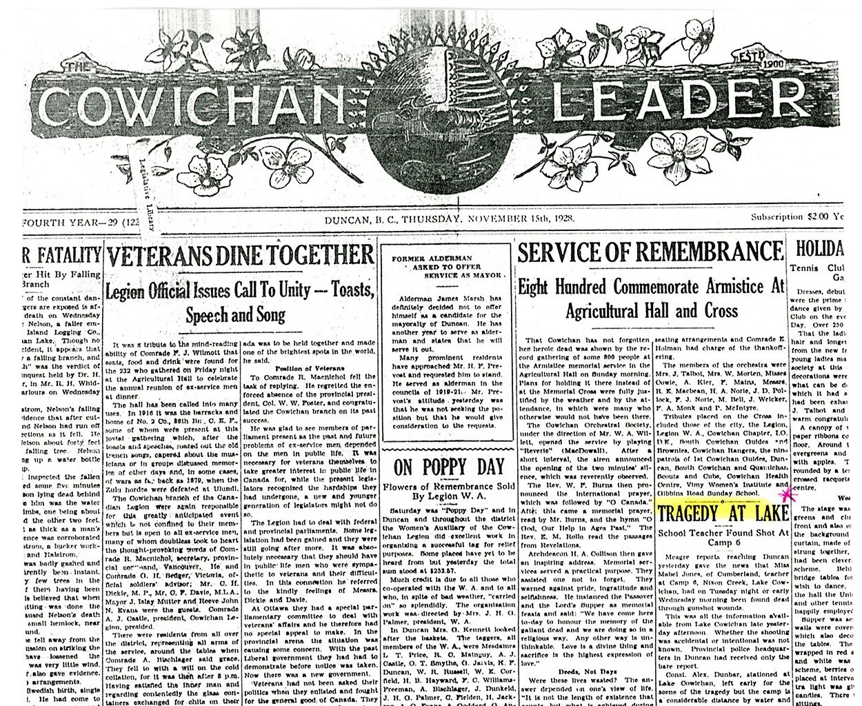 The shocking news caught Cowichan’s twice-weekly newspaper, the Cowichan Leader, going to press.