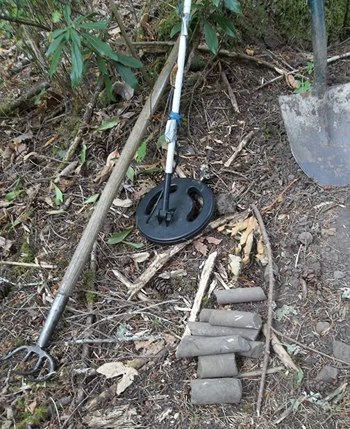 A sign warns of danger of gas and unstable ground at the site of the fan shaft, and all about are the signs of treasure hunters’ scratching.