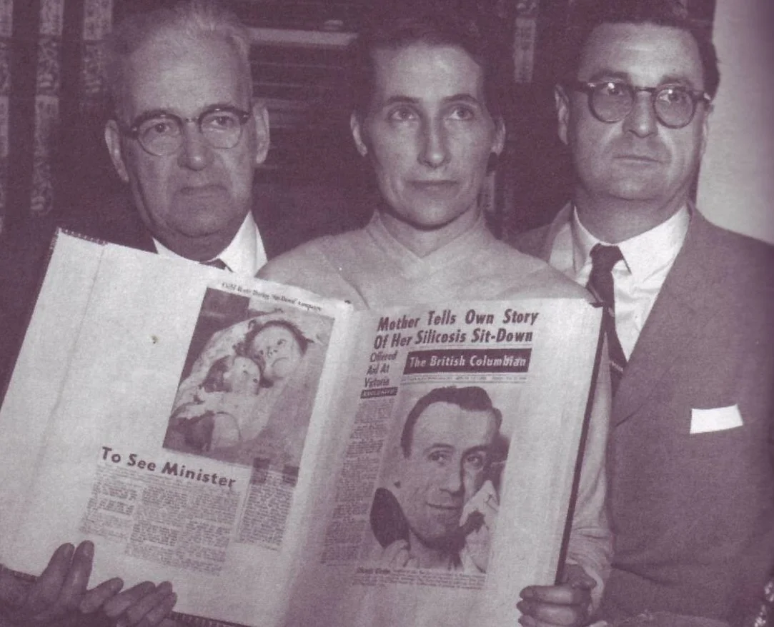 I took this information to the Workmen’s Compensation Board, but they ignored it. That was when I decided to take my children and sit on the steps of the Compensation Board office. We got lots of media coverage, but all they promised was a commission. When I received a letter months later turning down my husband’s request for a silicosis pension, I then took my children to Victoria where we sat on the Parliament steps for a day.