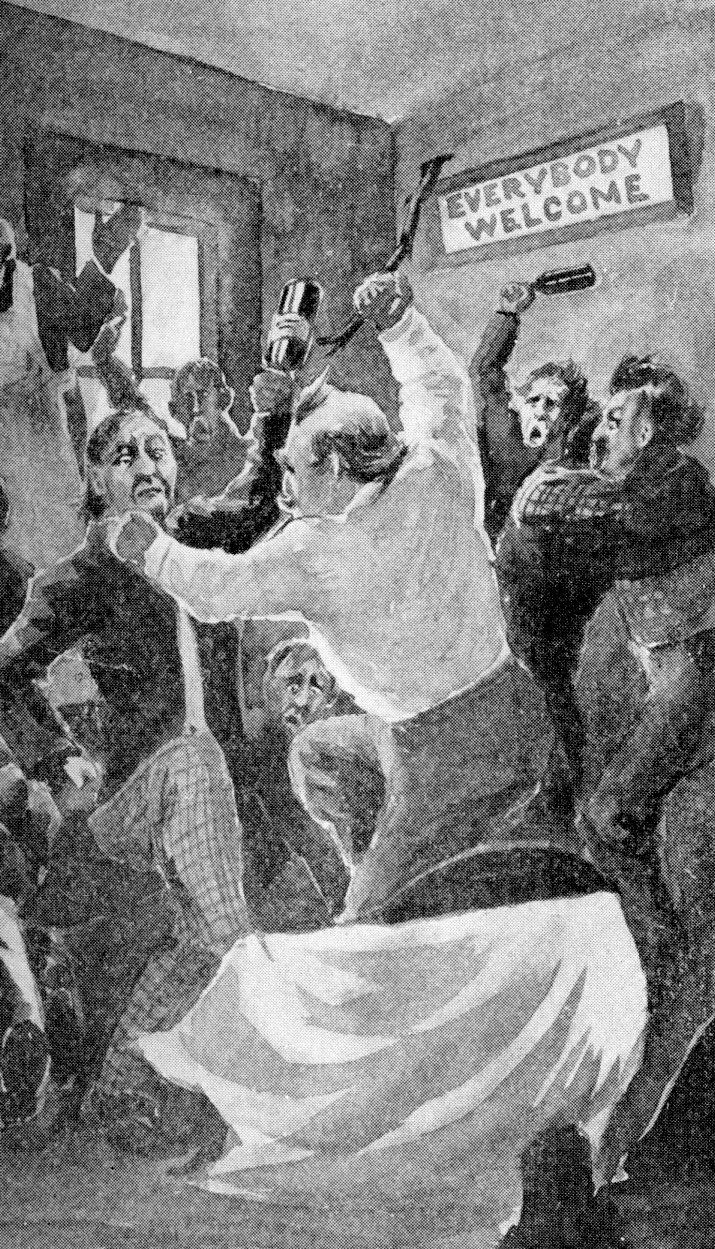 Whenever he made a movement to go outside for the flag one of the young fellows would invite him to “have another," and at last he sank down at one of the tables and fell asleep.