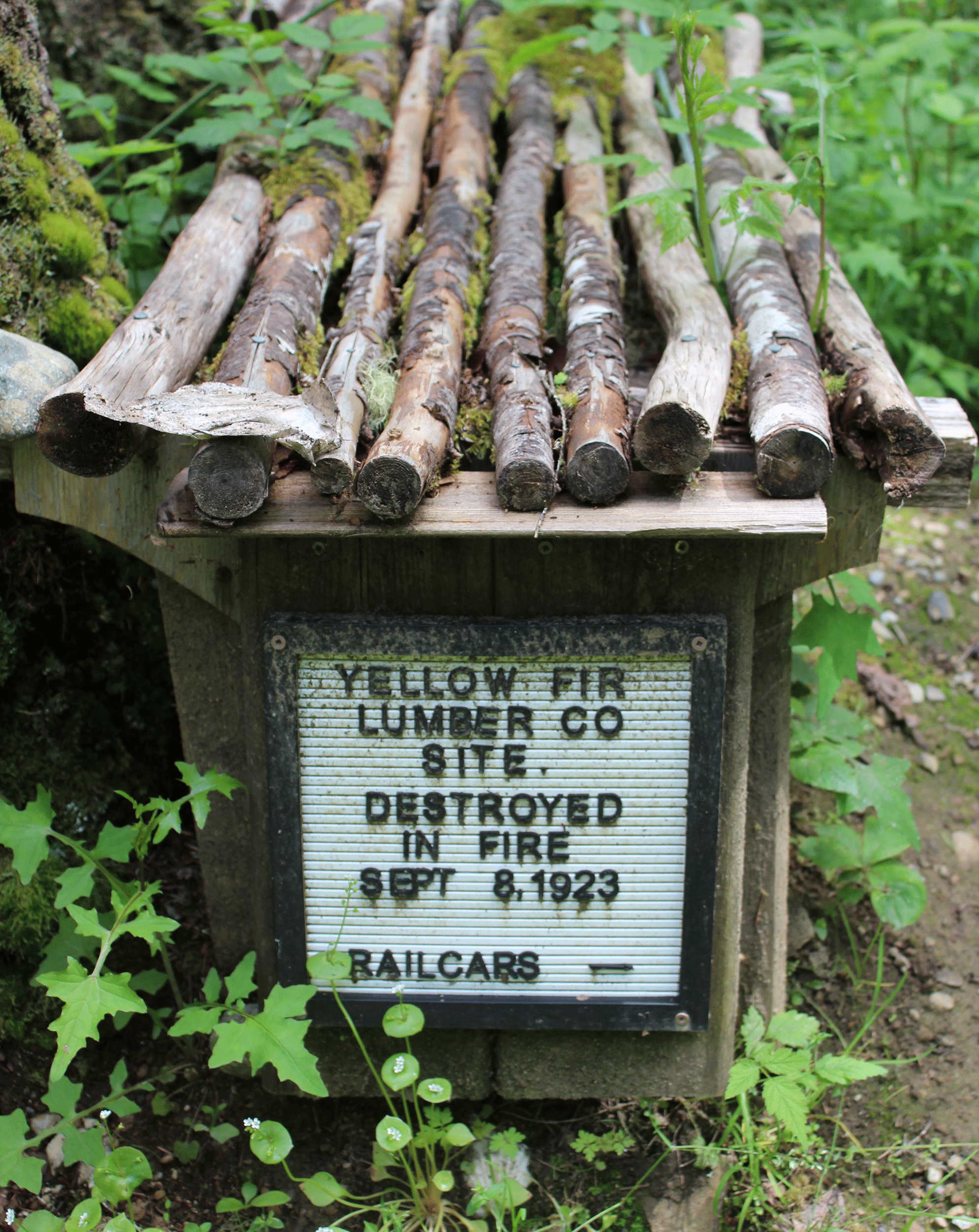 The Yellow Fir Lumber Co., as its principals chose to name it for reasons unknown, had a sawmill and logging operation here, served by its own narrow gauge railway, 1920-26. The firm made front page headlines in September 1923: “Yellow Fir Mill Burns - Entire camp, plan, stock and loaded cars go in disastrous outbreak on Saturday.”