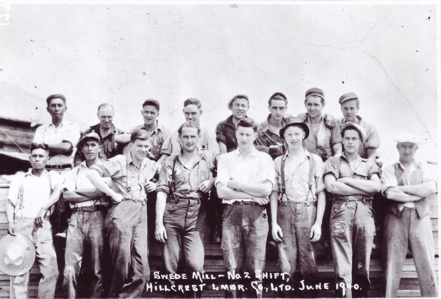 Ironically, the world war that brought horror and devastation to much of Europe brought a return of the ‘good times’ to the B.C. woods industry. Orders for Hillcrest products had increased early in 1939, only to be stymied by sporadic snowfalls that continued into April, followed by unseasonably high temperatures that again closed the woods.
