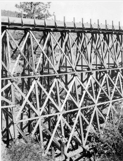 An elaborate and expensive flume system was constructed to carry water all of 20 miles to the arid soils of Wahlachin. —BC Archives